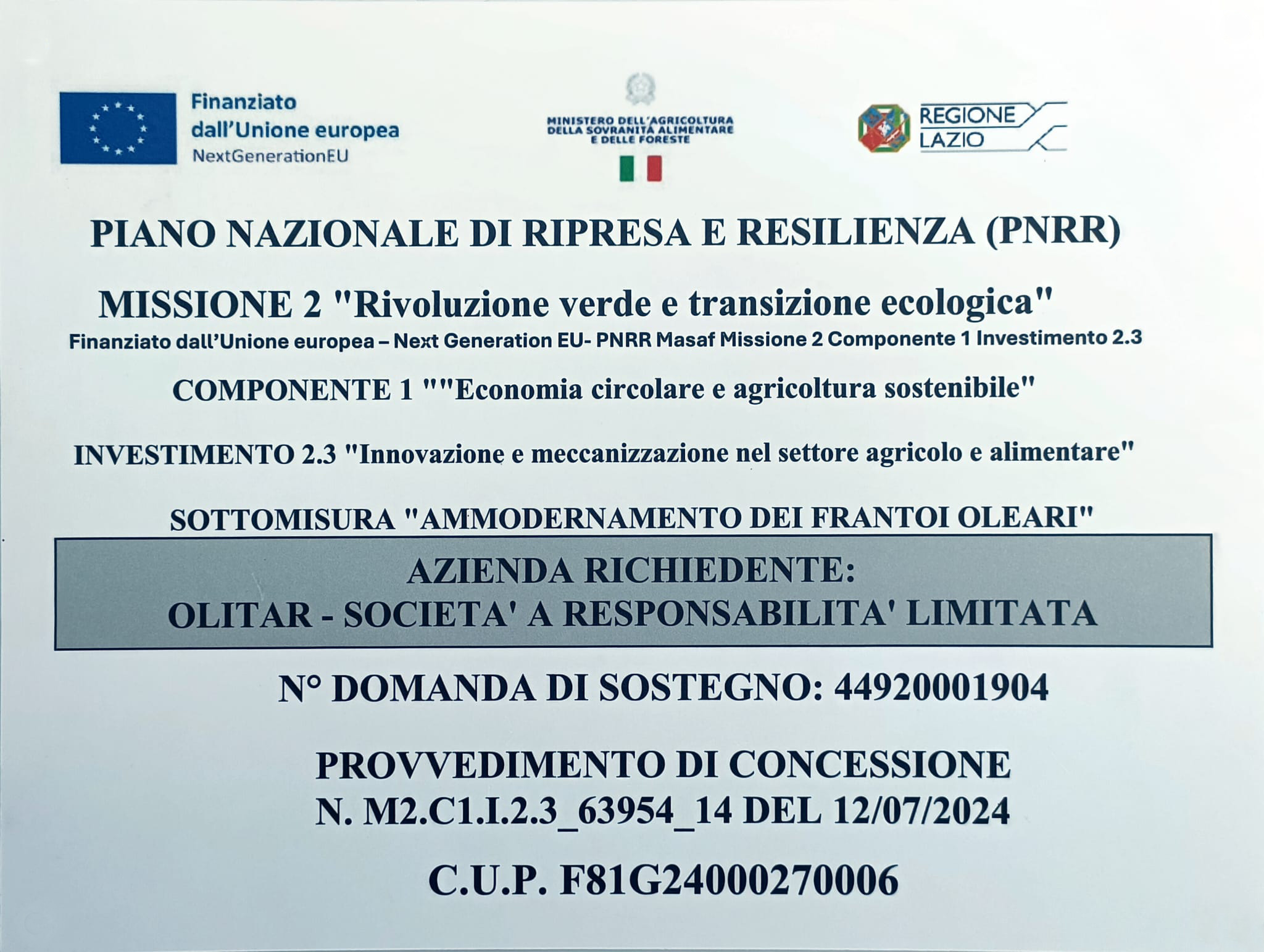 Beneficiario: OLITAR SOCIETA’ A RESPONSABILITA’ LIMITATA CUP: F81G24000270006